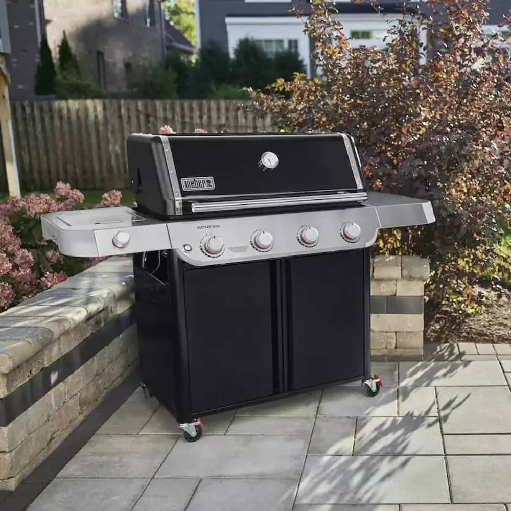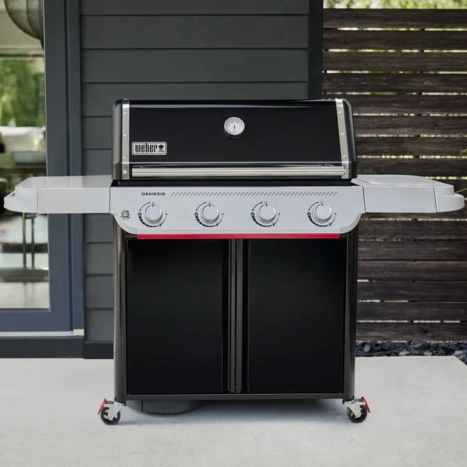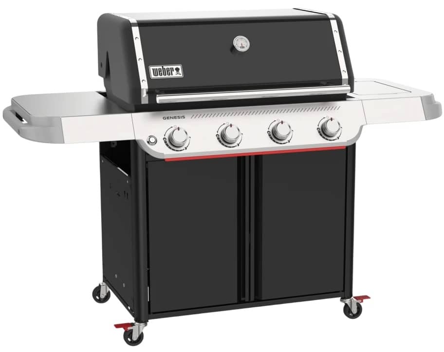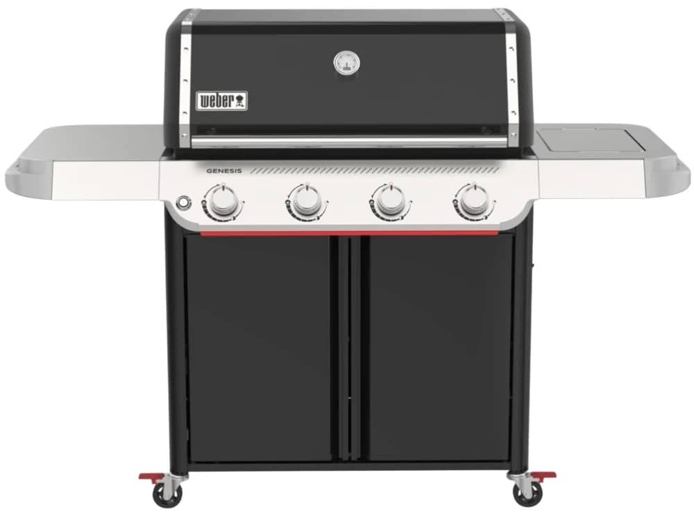 Газовый гриль Weber Genesis E-415 с 4-мя горелками, боковыми столиками, термометром, системой Weber Crafted и дополнительной конфоркой.