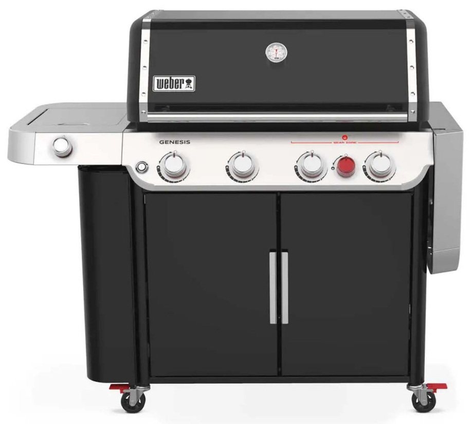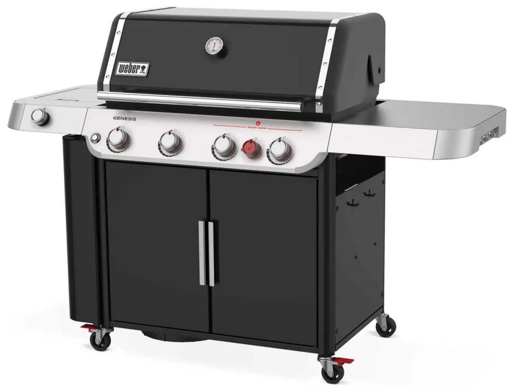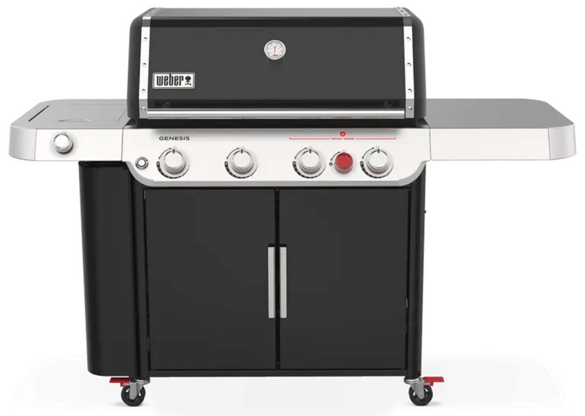 Газовый гриль Weber Genesis E-435 с 4-мя горелками, боковыми столиками, термометром, системой Weber Crafted и дополнительной конфоркой.