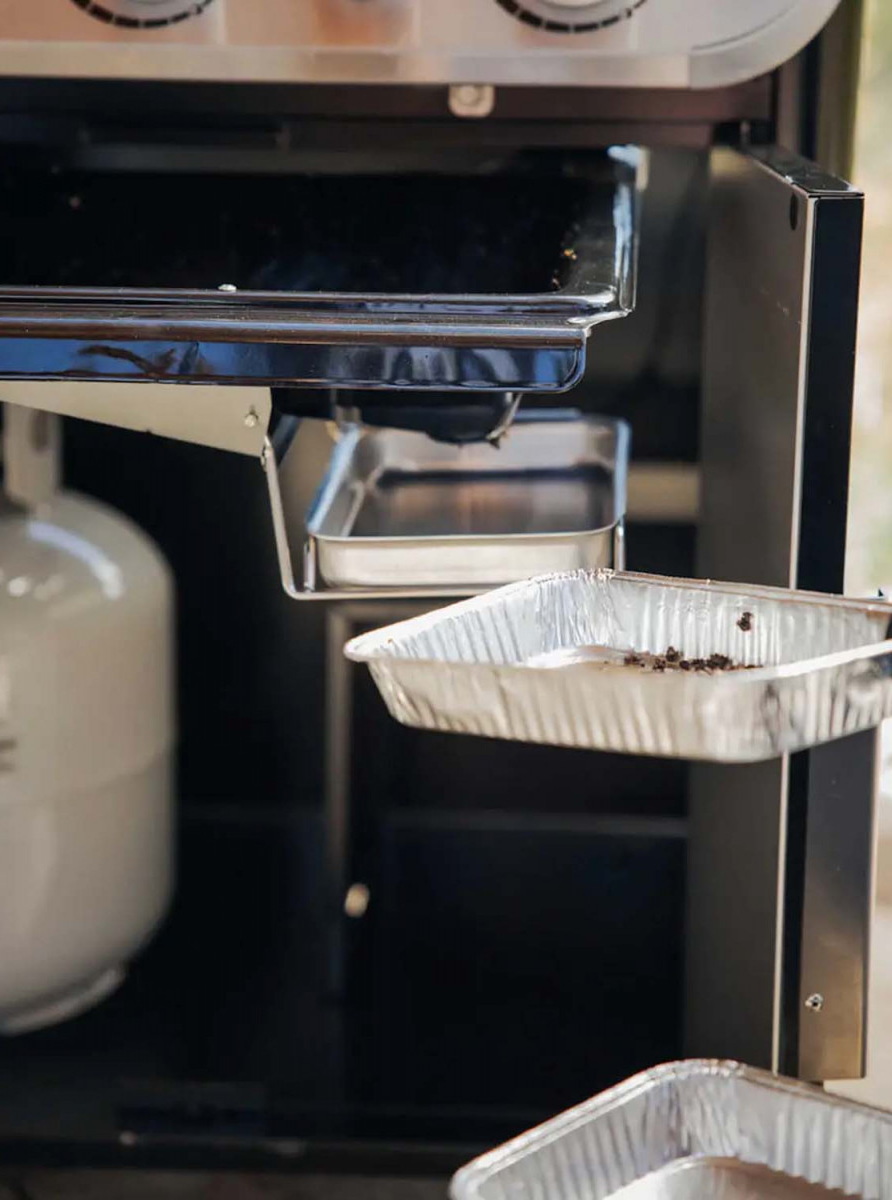 - Просторный шкафчик – для хранения аксессуаров Weber Crafted, щипцов и лопаток.