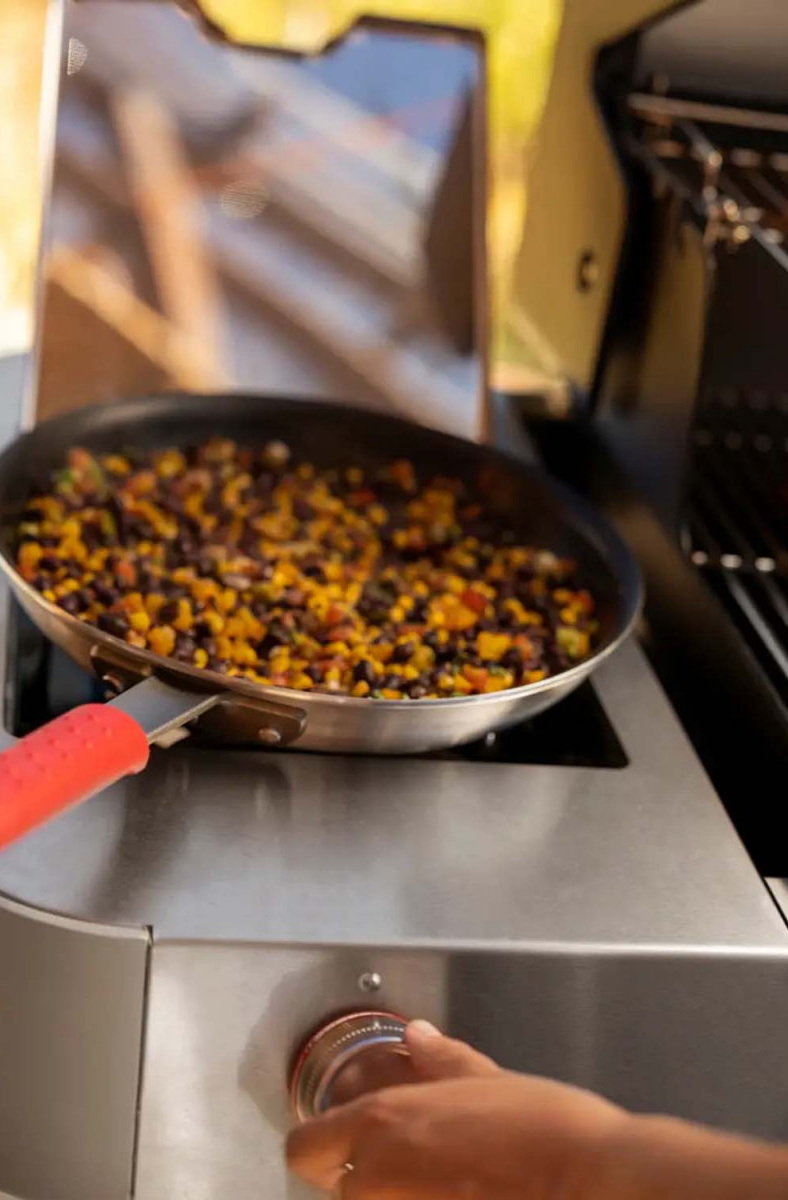 - Расширенная зона сильного жара Sear Zone (3,8 кВт) – одновременное обжаривание нескольких стейков с хрустящей корочкой;