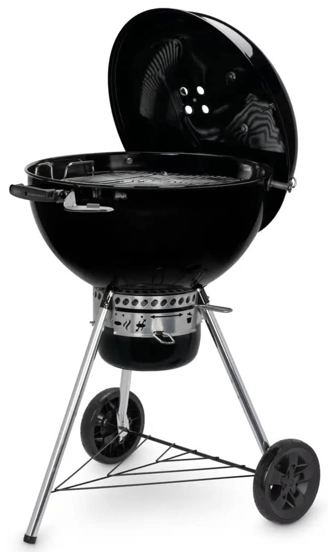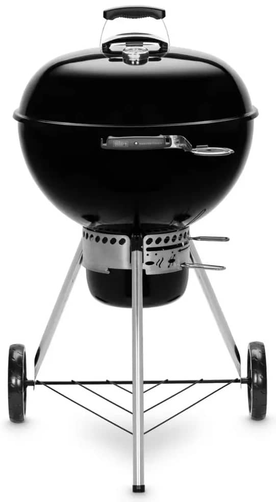 Мобильный угольный гриль Weber Master-Touch GBS SE E-5755 BLK EU в черном цвете, с режимом Smoke, системой Gourmet BBQ System и One-Touch, подставкой Tuck-Away, разделителями Char-Basket и встроенным термометром.
