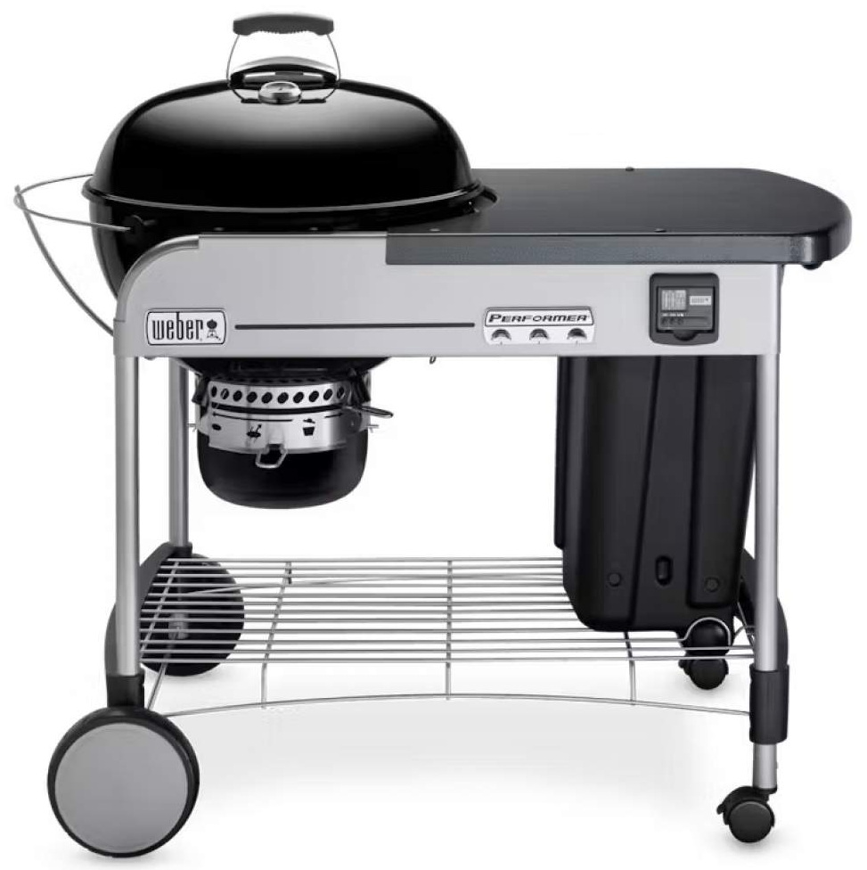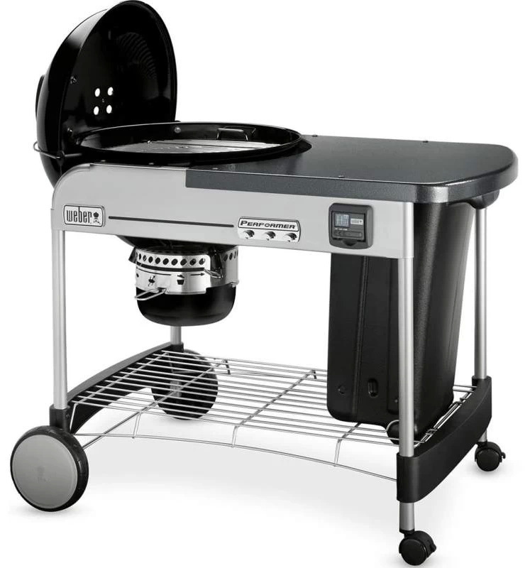 Угольный гриль Weber Performer Premium GBS 57 см н тележке с большой рабочей поверхностью, системой GBS, контейнером для хранения угля, термометром и съемным таймером.