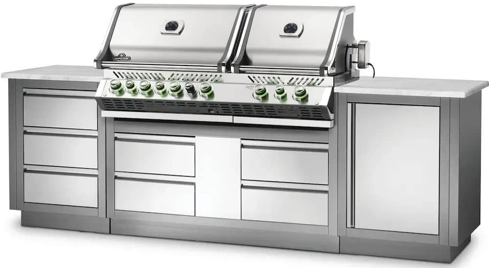 Уличная летняя кухня Napoleon Oasis 100 со встроенным газовым грилем Bipro 825 из нержавеющей стали на 10 горелок.