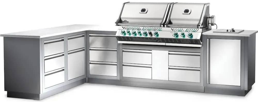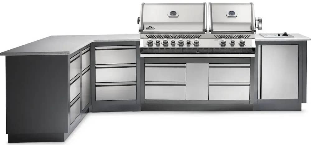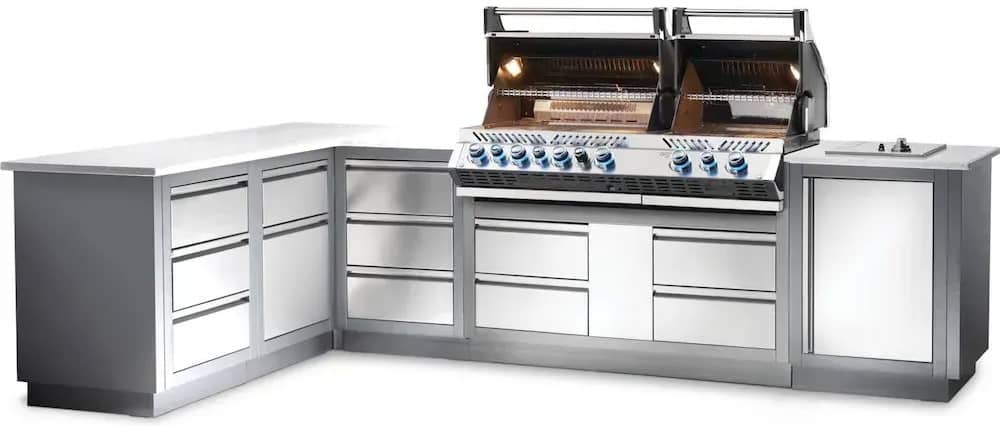 Уличная летняя кухня Napoleon Oasis 300 со встроенным газовым грилем Prestige Bipro 825 из нержавеющей стали на 10 горелок.