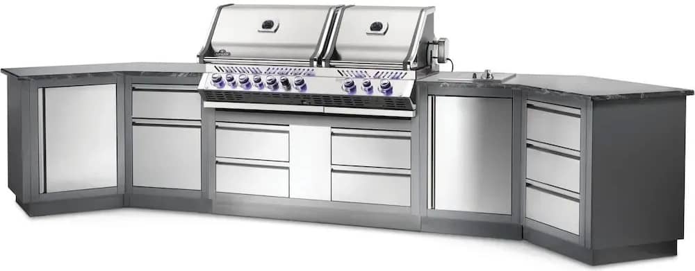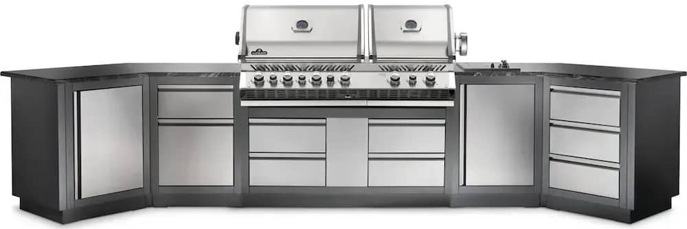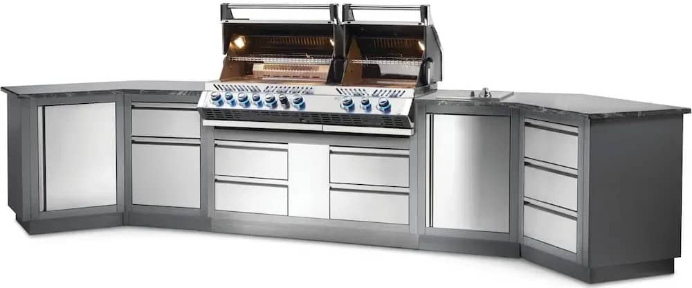 Уличная летняя кухня Napoleon Oasis 400 со встроенным газовым грилем Prestige Bipro 825 из нержавеющей стали на 10 горелок.
