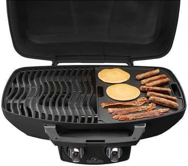 Чугунная двусторонняя поверхность Napoleon для грилей серии TravelQ позволяет использовать газовый гриль как полноценную сковороду.