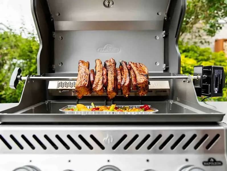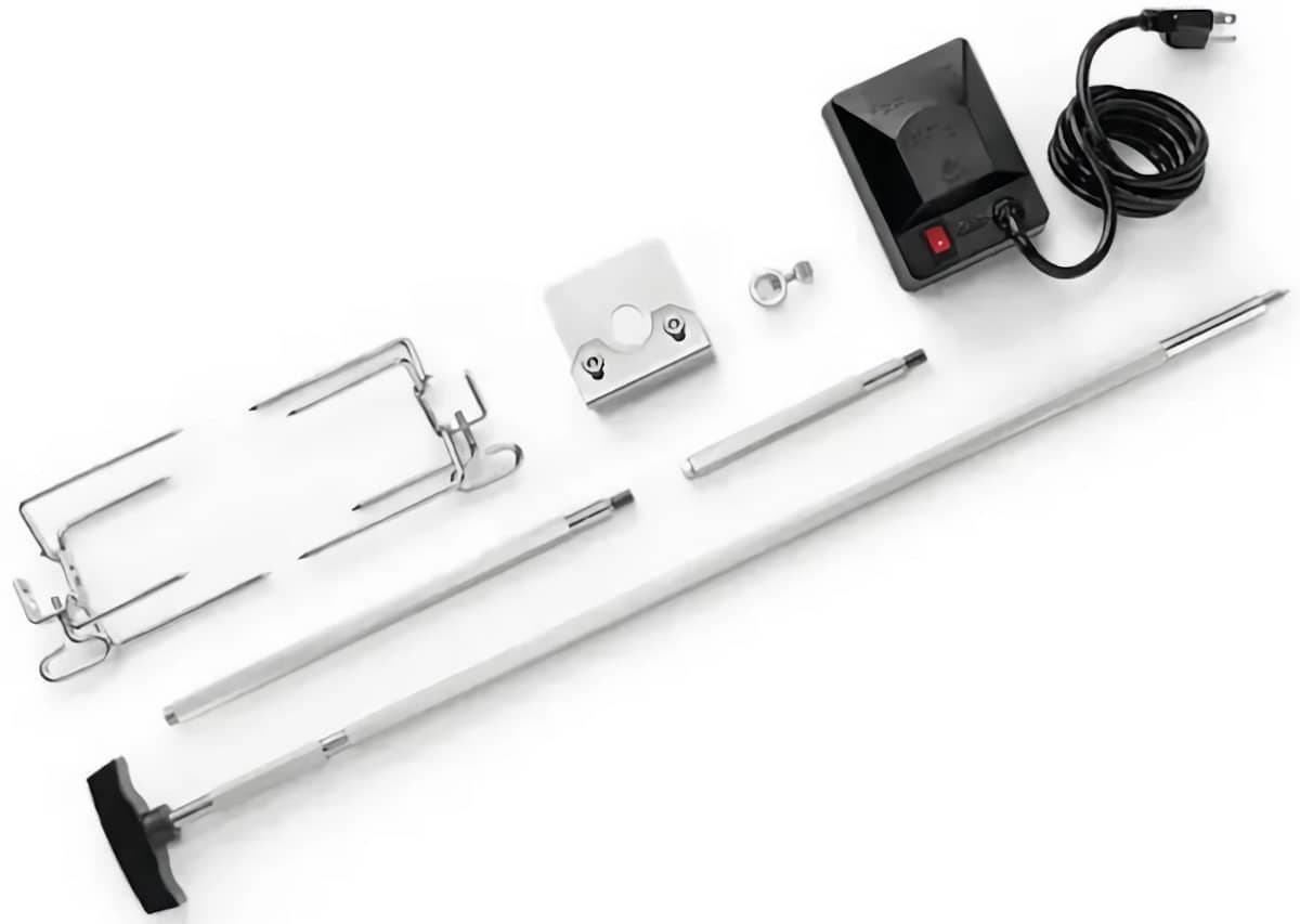 Электрический вертел Napoleon с двумя зажимами и мотором для газовых грилей Freestyle – практичный аксессуар для приготовления больших кусков мяса, птицы и рыбы с равномерной обжаркой и насыщенным вкусом.