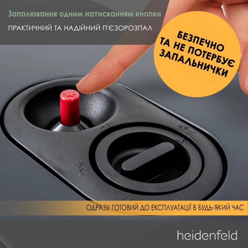 • Устройство имеет удобный механический пьезоподжиг, позволяющий запускать устройство без использования спичек или зажигалок;
